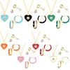 Set of 3 Enamel Earrings + Pendant Box Set Gold Tone 17 Inch Chain + 2in Extender (Stud...