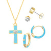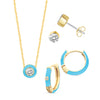 Set of 3 Enamel Earrings + Pendant Box Set Gold Tone 17 Inch Chain + 2in Extender (Stud...