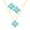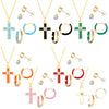 Set of 2 Enamel Earrings + Pendant Box Set for Women Girls Gold Tone 17 Inch Chain +...